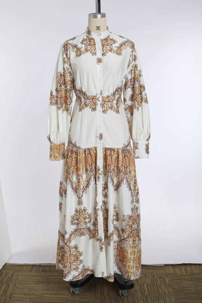 Spring and summer cross-border European and American chiffon dress bohemian women's high waist dress