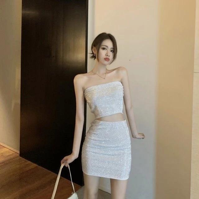 Color: white tubular top, white dress, black tubular top, black dress, white tubular white shirt dress, black tubular top black dress